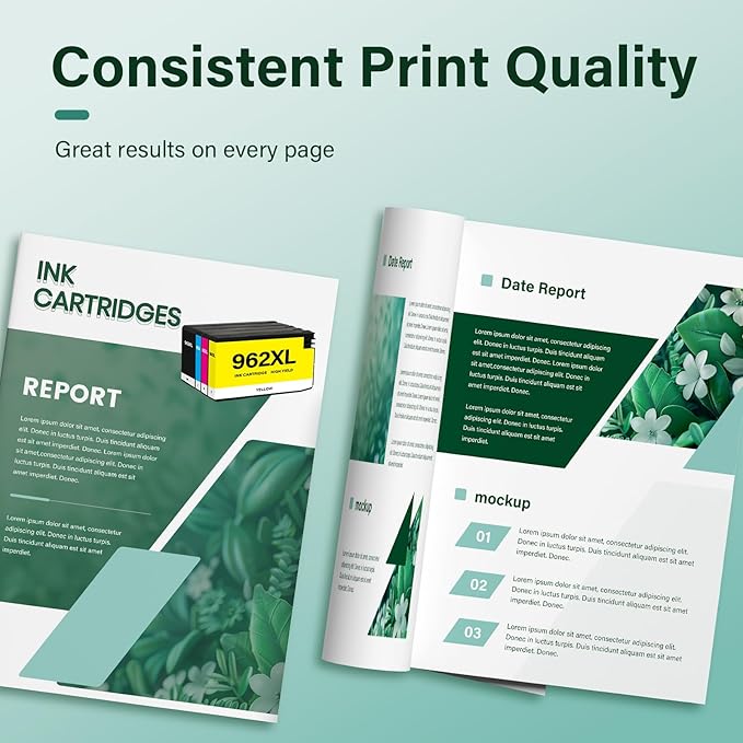 • Package Content: Ink 962XL Black and 962 Color Combo Pack (1 × 962XL Black, 1 × 962XL Cyan,1 × 962XL Magenta,1 × 962XL Yellow Ink Cartridges)