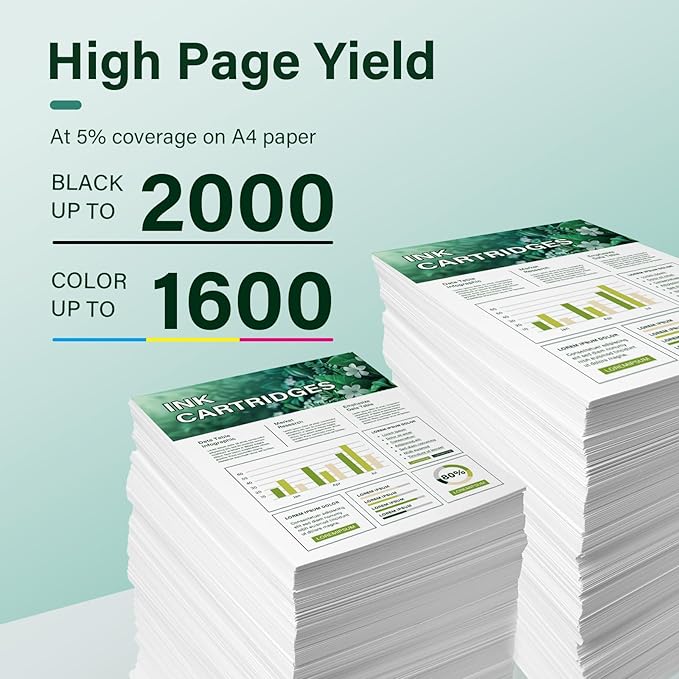 • High Page Yield: 962XL ink cartridges combo pack yields up to 2,000 pages for each 962XL Black Ink,and 1,600 pages for each 962XL Color Ink,at 5% coverage (A4e letter)