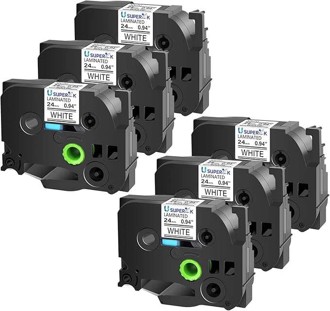 6 Pack 24mm 0.94 Laminated White Tape Compatible for Brother P-Touch Label Maker Tape TZe-251 24mm Label TZe251 1 Inch TZe TZ Tapes TZ-251 TZ251 for PT-D600 D610BT P700 P750W P950NW P710BT