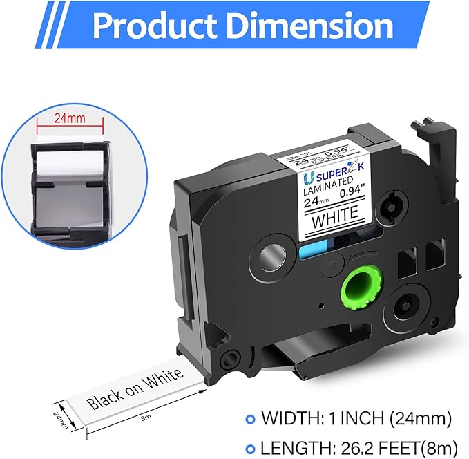 • USUPERINK compatible for Brother p-touch label tape TZe-251 TZe251 TZ-251 TZ251 AZe-251 1 inch 25mm 0.94'' laminated white tape